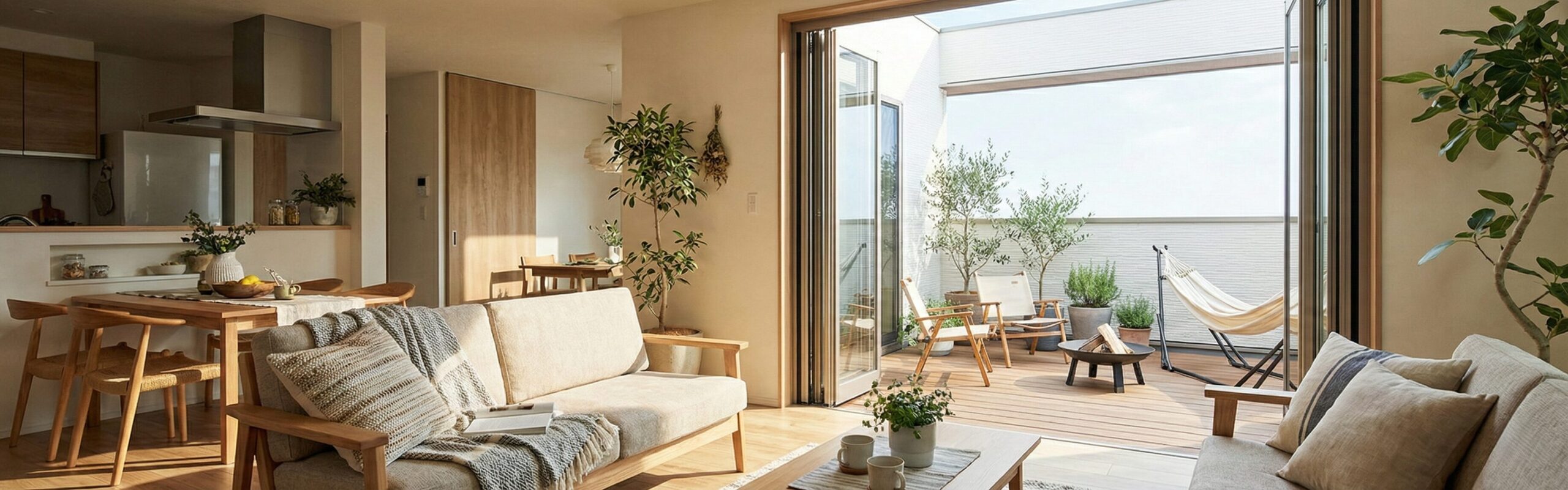 - 【コートハウス×フルオープンサッシ】プライバシーと開放感を両立する「後悔しない」間取りの秘訣「開放感は欲しいけれど、道路や隣家からの視線が気になる」 この都市部特有のジレンマを解決する唯一の解、それが「コートハウス(中庭のある家)×フルオープンサッシ」の組み合わせです。 通常、大きな窓はプライバシー侵害のリスク […]